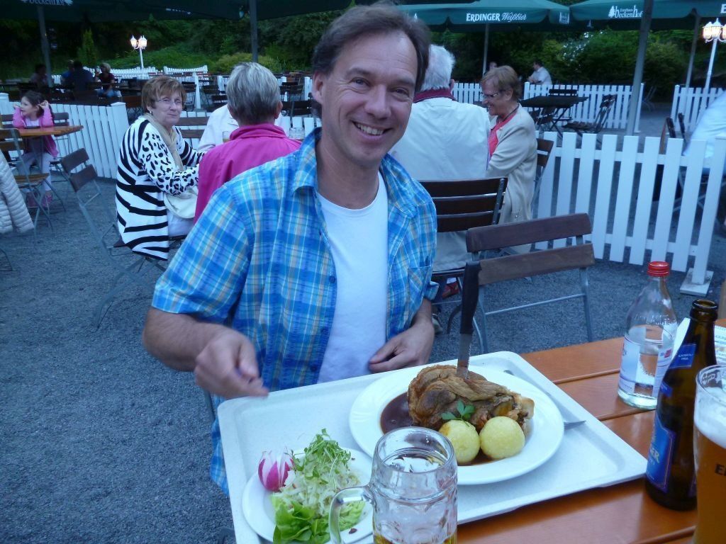 Zum Ausklang des Tages machten wir einen Stopp im Forsthaus „Beckenhof“ bei Lemberg. Des warmen Wetters wegen konnte man die saftige Haxe im Freien genießen: Ein rundum gelungener Tagesabschluss!