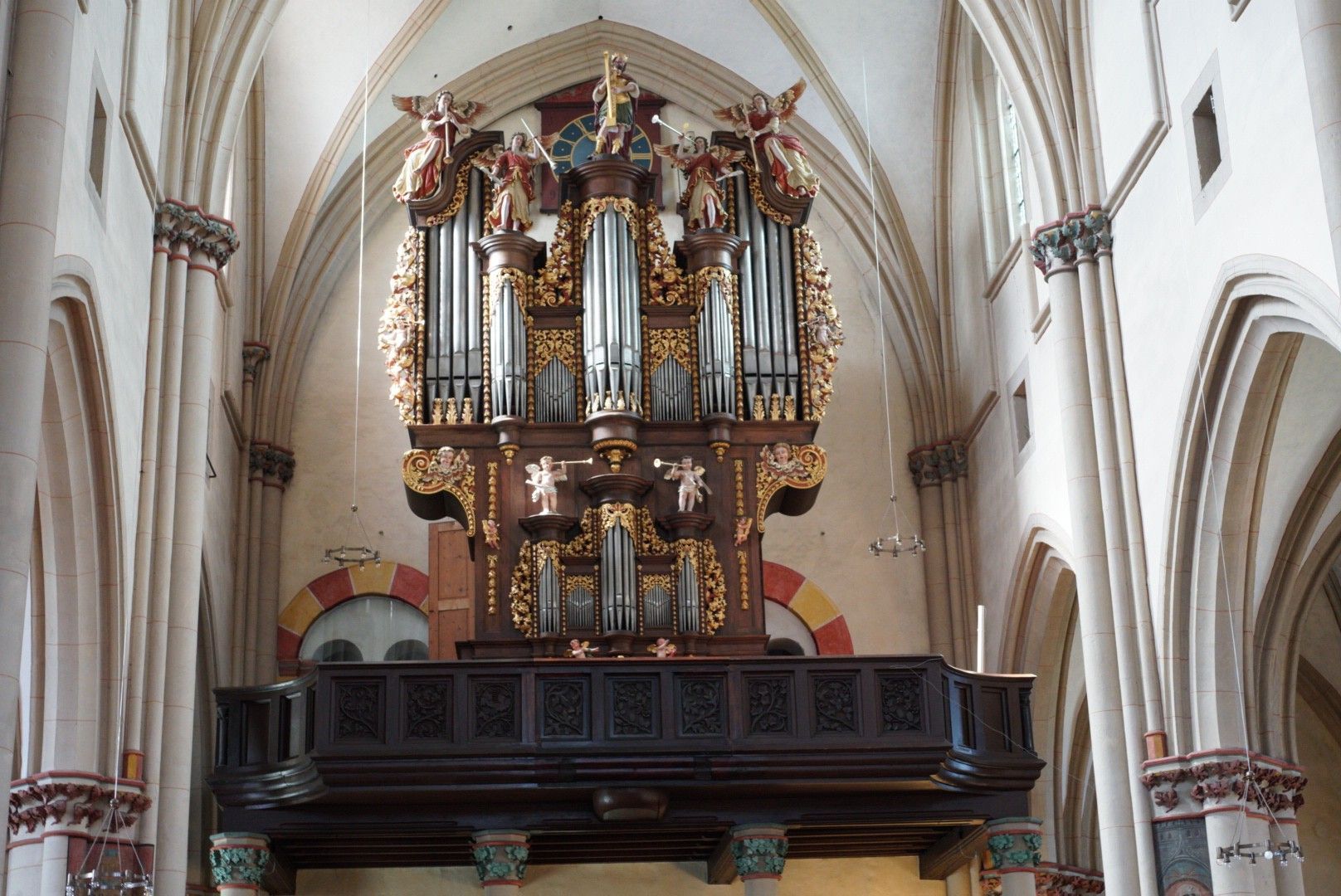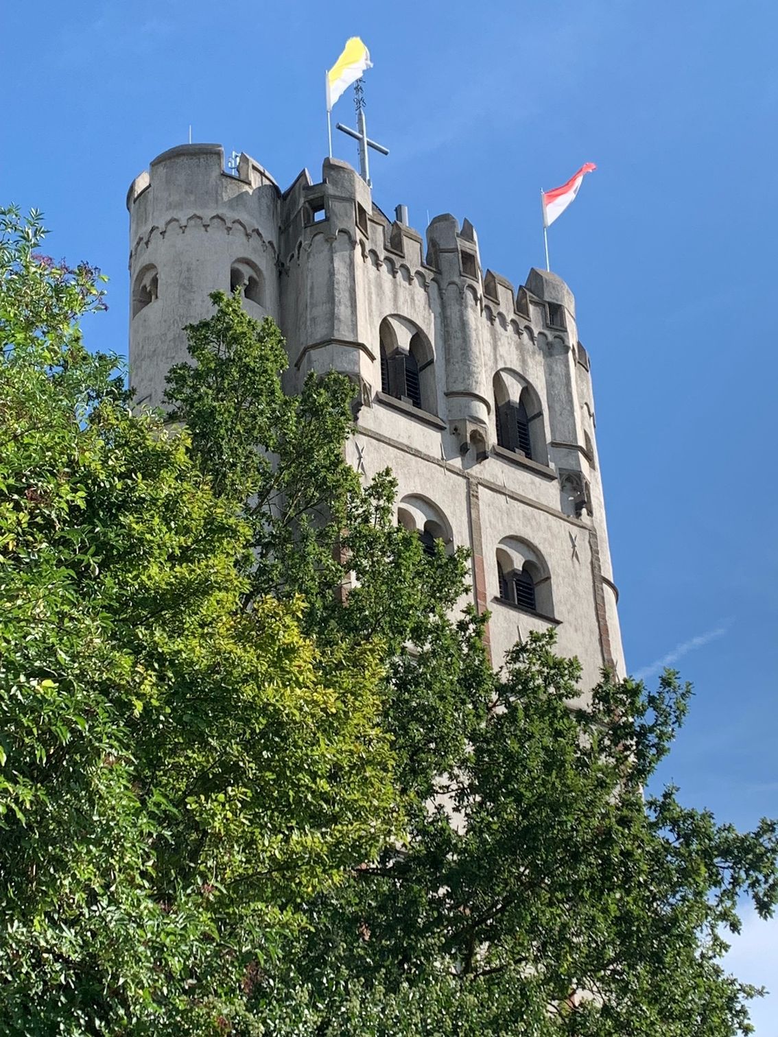 Neben einigen Sperrungen, Baustellen und Umleitungen verlief die Fahrt ohne Beschwernisse und so gelangten wir zur Mittagsrast zum Parkplatz am „Schalkemehrener Maar“. Es gab Wurstwecke für alle und Getränke aus der Busbar. Bei sehr schönem Wetter wanderten einige Teilnehmer zum nahe gelegenen Maar, einige umrundeten es sogar. Andere taten sich's gemütlich auf Bänken unter schattigen Bäumen. Gegen 14:00 Uhr fuhren wir dann weiter und erreichten Münstermaifeld wie geplant gegen 15:00 Uhr. Da war noch ein Kaffee im direkt vor der Stiftskirche gelegenen Café Vulcana möglich. Um 15:30 Uhr begannen wir mit Einsingen und dann war Probe bis 16:30 Uhr.